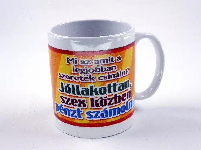 ![]() tréfás bögre